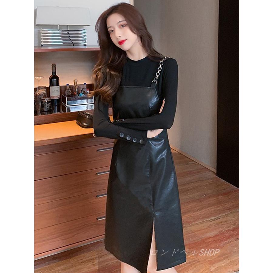 レディース キャミワンピース 2点セット Puレザー タイトワンピース ロング丈 無地 フェイクレザー ドレス 韓国風 通勤 オシャレ 着痩せ 代30代40代 Lsn 2309 ロンドベルshop 通販 Yahoo ショッピング